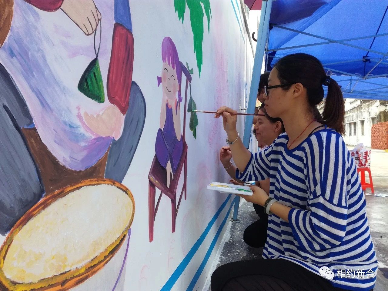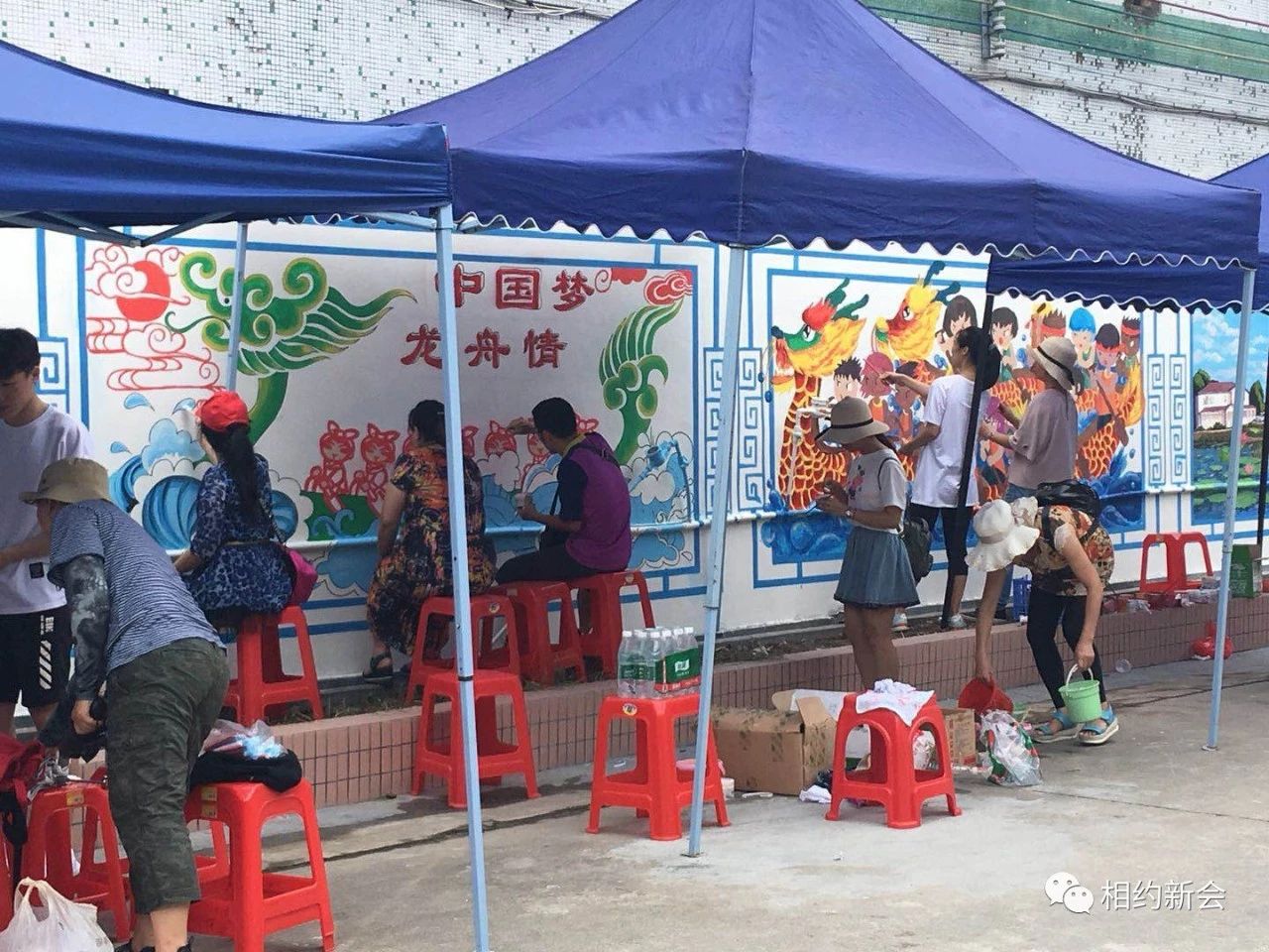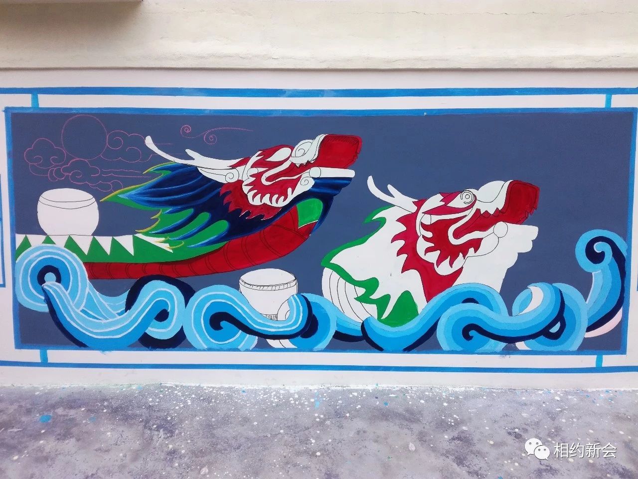 调颜料、勾轮廓、涂色彩……绘画过程中,师生们合作无间,采用古典、卡通等手法,结合主题内容,融入本土特色元素,将一幅幅色彩饱满、饱含寓意的墙绘画呈现出风格各异的美好风貌,大泽龙舟、本土景致、公益广告等跃然墙上,过往市民纷纷驻足观赏,连连称赞。