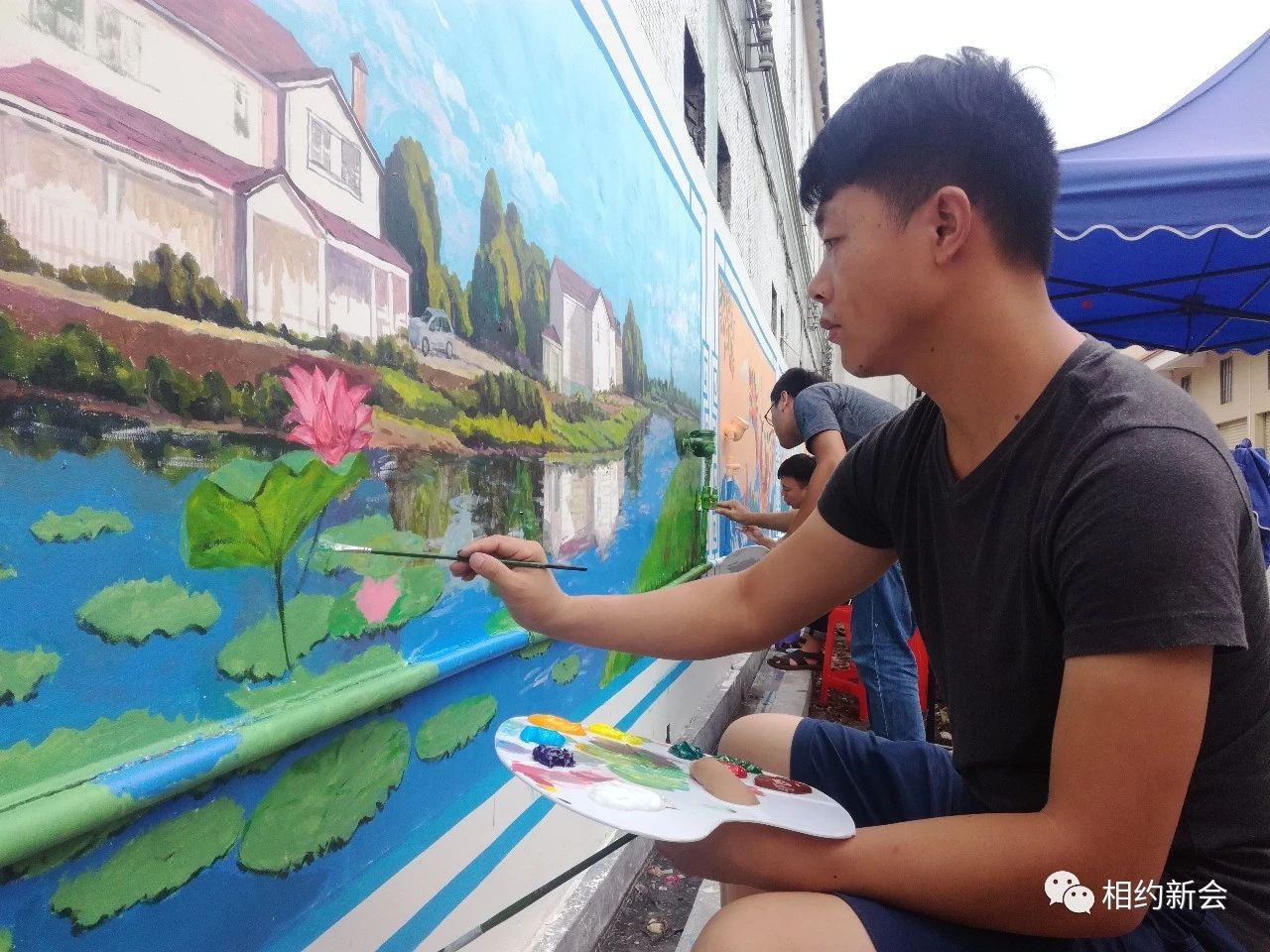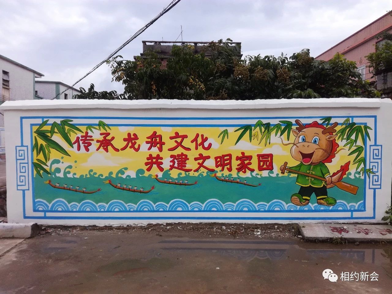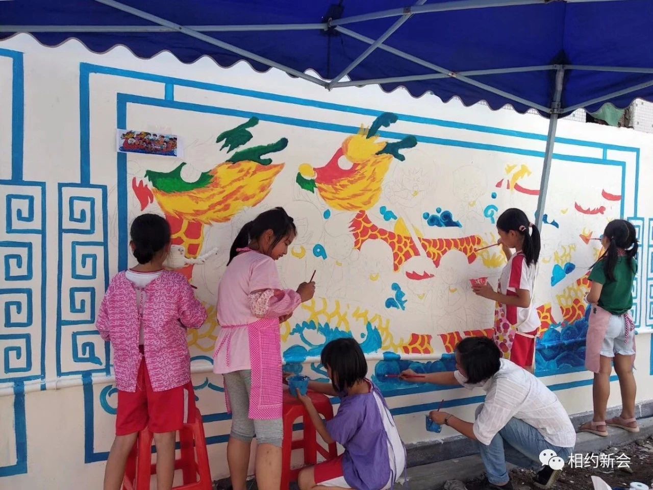 调颜料、勾轮廓、涂色彩……绘画过程中,师生们合作无间,采用古典、卡通等手法,结合主题内容,融入本土特色元素,将一幅幅色彩饱满、饱含寓意的墙绘画呈现出风格各异的美好风貌,大泽龙舟、本土景致、公益广告等跃然墙上,过往市民纷纷驻足观赏,连连称赞。